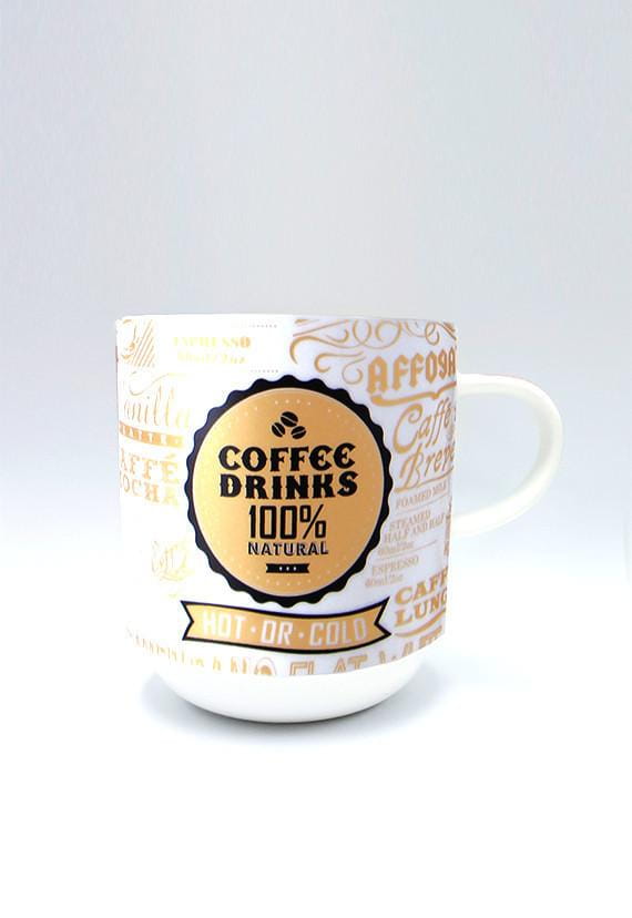 Efektowny zestaw 4 kubków z porcelany, Coffee Drinks