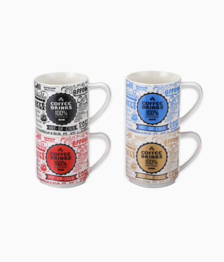 Coffee Drinks, Zestaw 4 Kubki z Porcelany
