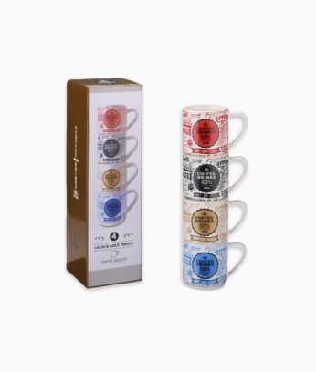 Komplet nowoczesnych 4 kubków z porcelany Coffee Drinks w 4 różnych kolorach