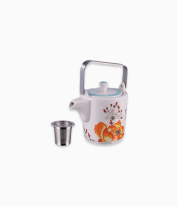 Czajnik z zaparzaczem w kwiaty - pomarańczowe i różowe
