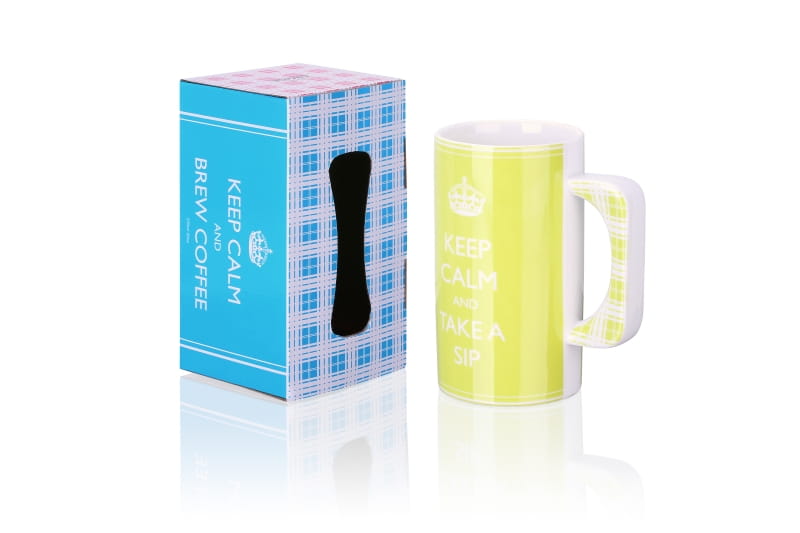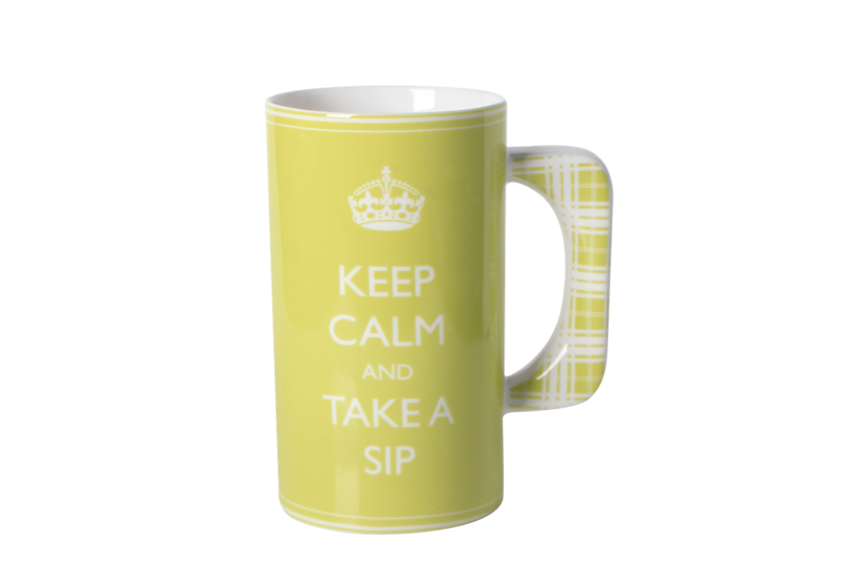 Z napisem Keep Calm And Take A Sip - czyli "Bądź spokojny i upij łyk"