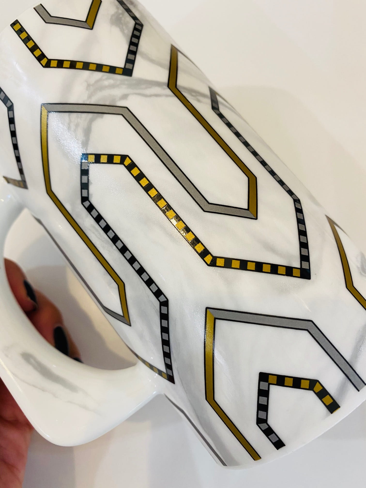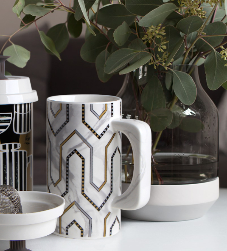 Ciekawy kształt w połączeniu z nadrukiem marmuru oraz złotych ornamentów w stylu Art Deco