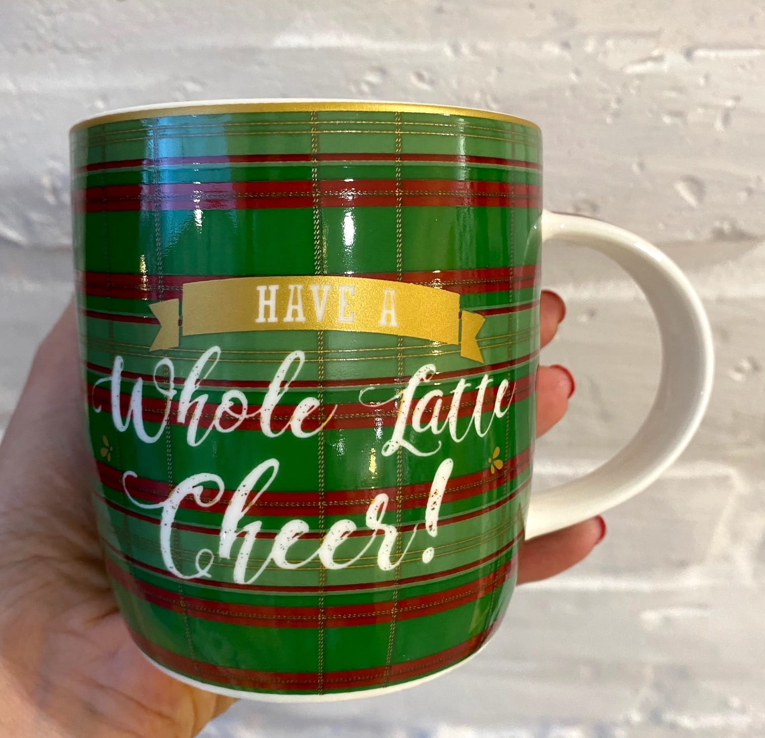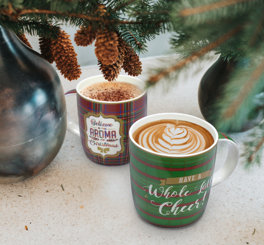 Kubek z pozytywką ''Zielona Kratka''rozświetli święta i uraduje osobę, której go podarujesz.