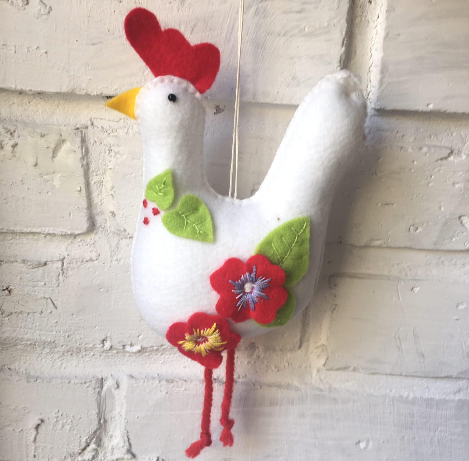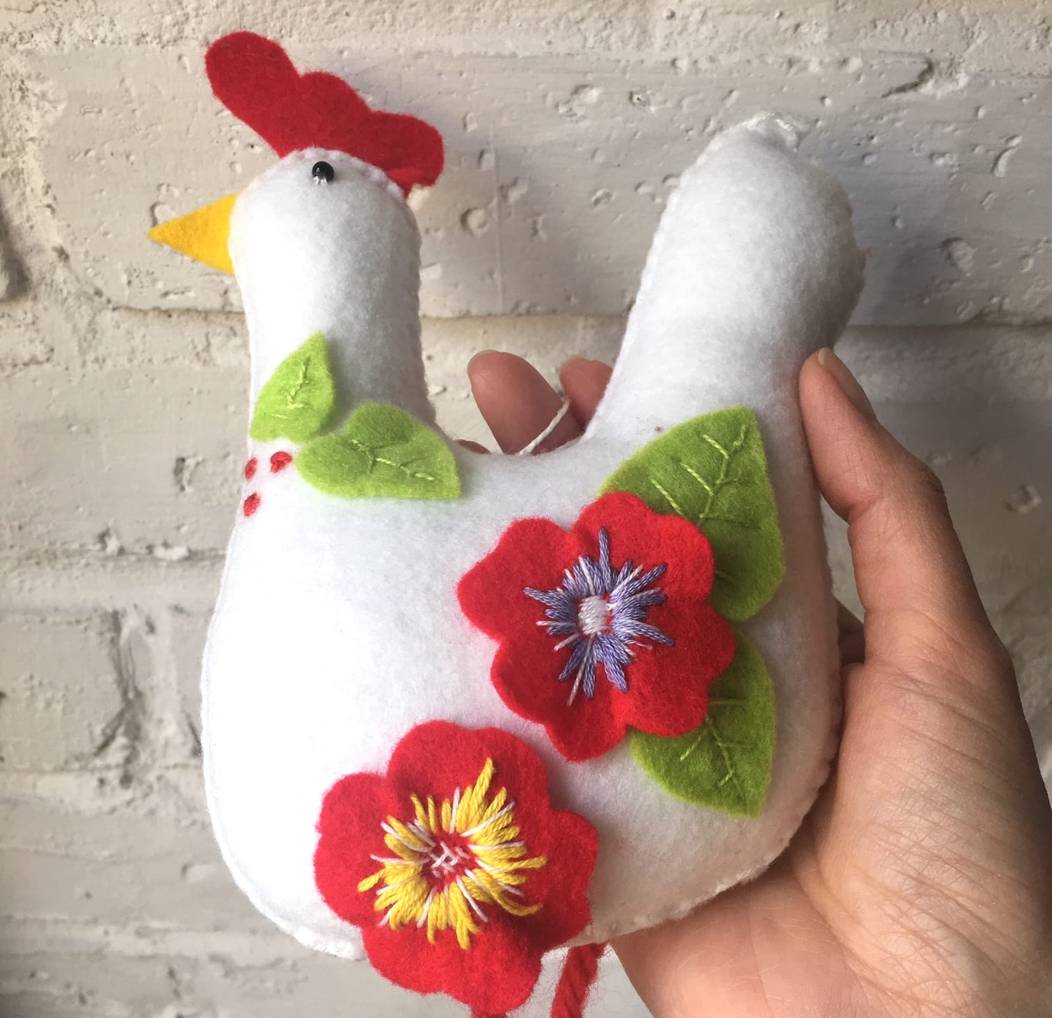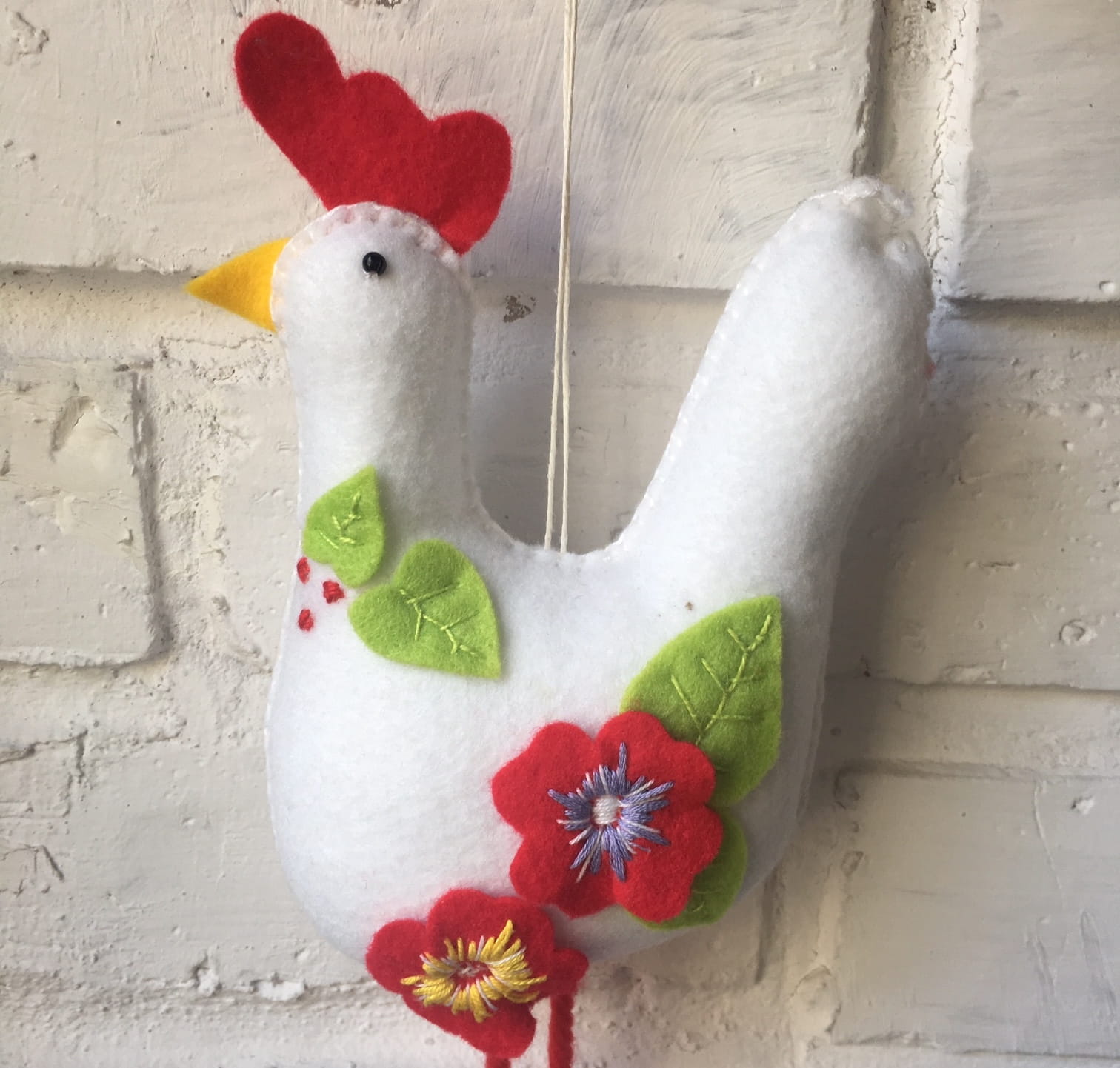 Kurka ręcznie szyta biała 19cm (bez nóżek)