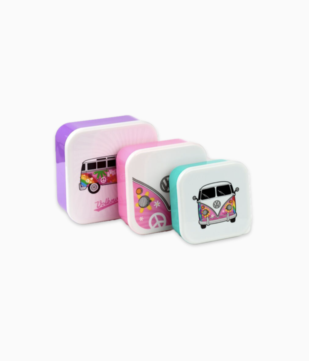 Idealny lunchbox dla wielbicieli kamperów i marki Volkswagen. Zestaw trzech pojemników umożliwia stworzenie w pełni wartościowego, zróżnicowanego, a przede wszystkim pysznego śniadania.