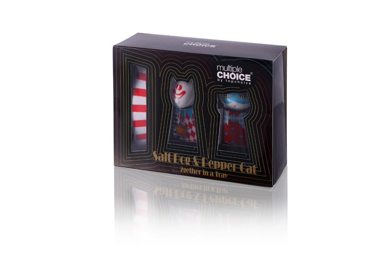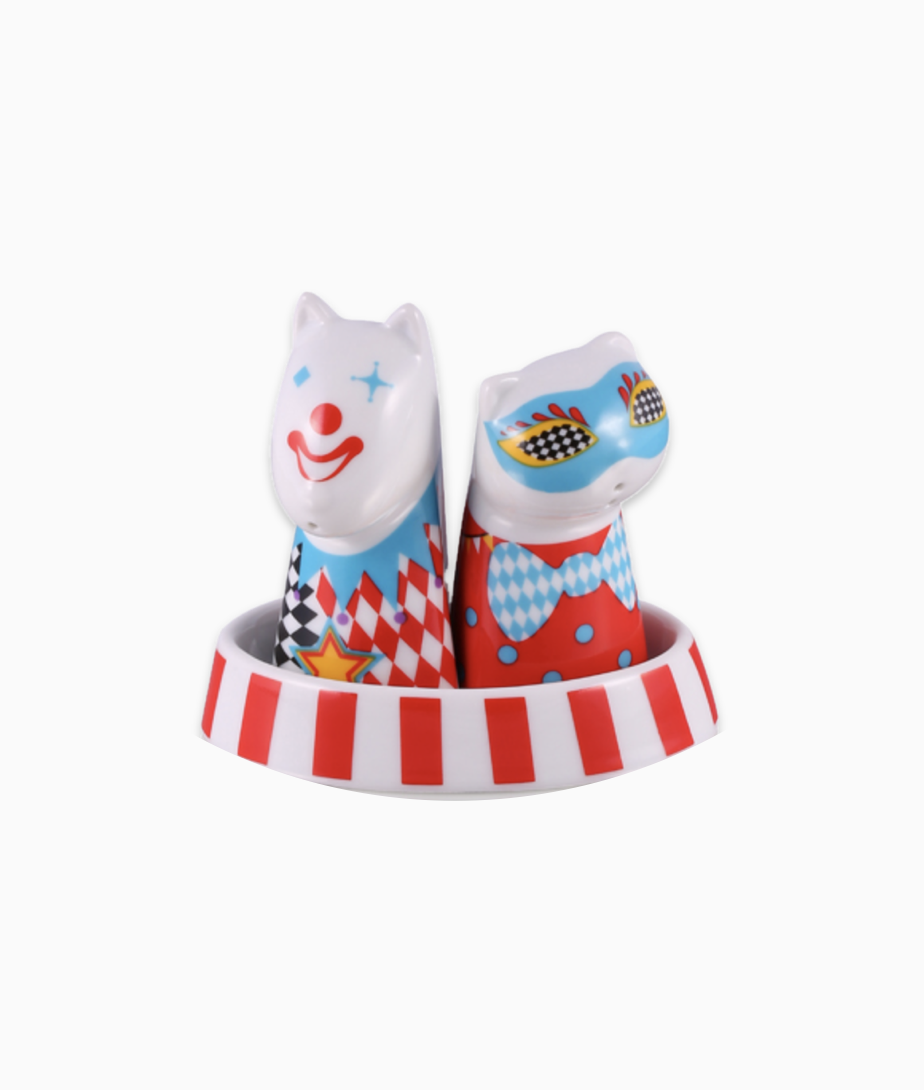 Porcelanowy zestaw solniczka i pieprzniczka - Kot i Pies Maski Cyrkowe