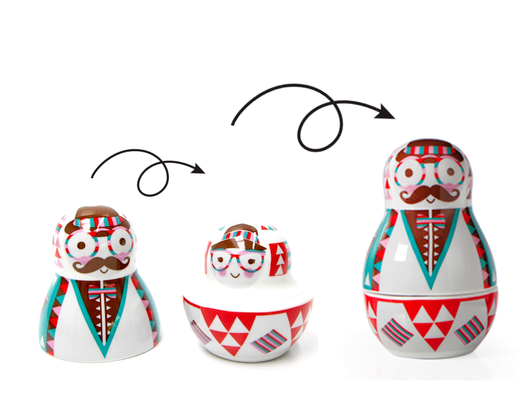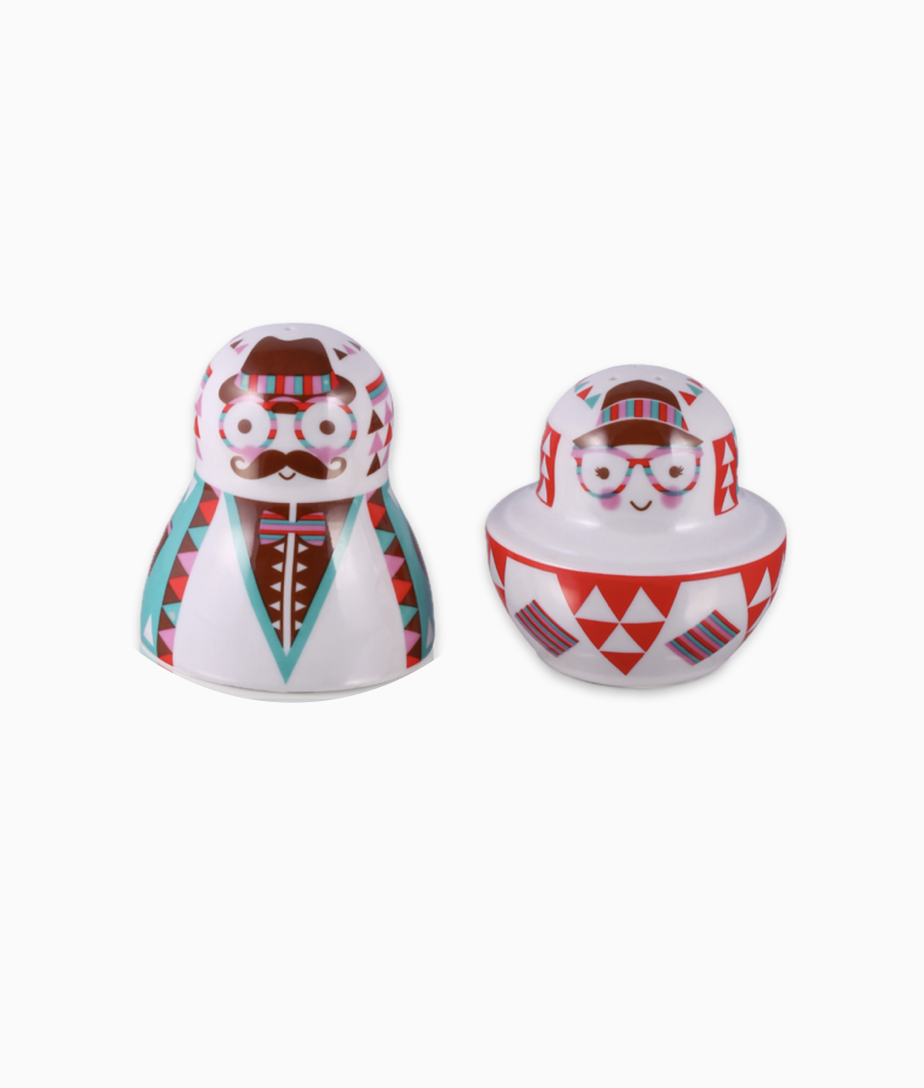 Porcelanowy zestaw solniczka i pieprzniczka - Matrioszka Hipster