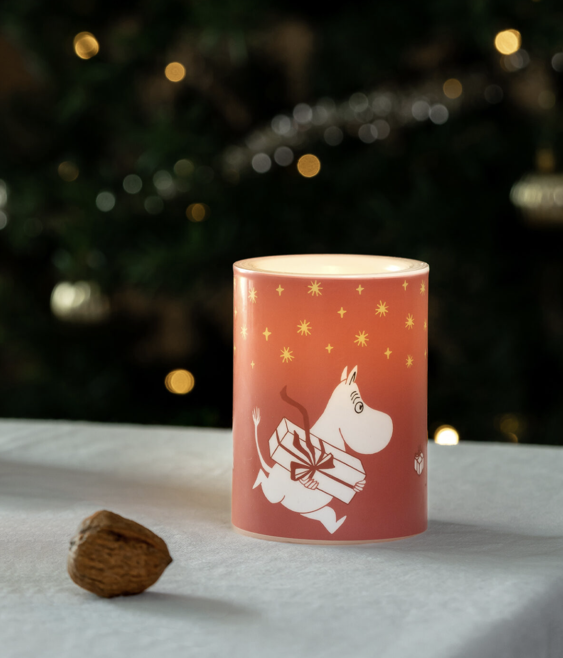 Świeca LED Muminki Prezent czerwona 10cm