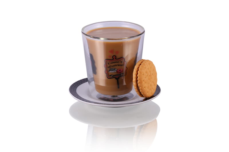 Szklanka z podwójnymi ściankami z porcelanowym spodeczkiem Cukiernia
